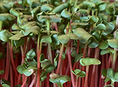 Amaranth is a small delicate microgreen with a red stem and a mild, earthy taste. It is excellent with XXXXX. Amaranth microgreens are rich in multiple essential nutrients, including the following potential health benefits:
